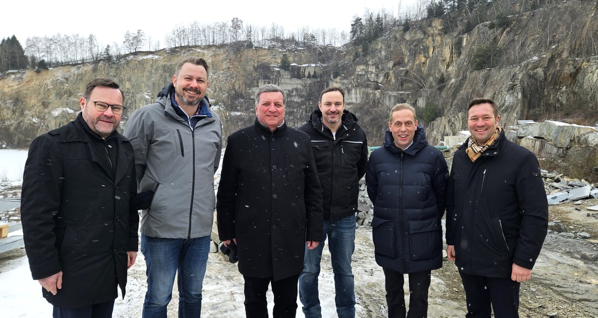 Bei einem Besuch von Christian Bernreiter, Bayerischer Staatsminister für Wohnen, Bau und Verkehr, der auf Einladung von MdL Josef Heisl in die Region gekommen war, hat der Granitwerks-Inhaber die großen Herausforderungen für die Branche geschildert. „Dabei geht es mir allgemein um den bayerischen Granit, nicht allein um mein Geschäft“, so Haslbeck. Es müsse wieder mehr Patriotismus im Bauwesen der heimischen Regionen gelebt werden. Gemeinsam mit den CSU-Mandatsträgern MdL Josef Heisl, MdB Hans Koller, Bezirksrat Stephan Gawlik und Hauzenbergs drittem Bürgermeister Christoph Amsl haben der Staatsminister und Jürgen Haslbeck eine Runde durch das Granitwerk gedreht und Einblick zum Abbau und den Arbeiten vor Ort im Schulerbruch erhalten. So wurde das Granitwerk in Hauzenberg bereits im Jahr 1948 gegründet. Zwischenzeitlich arbeiten jetzt 150 Köpfe im Sägewerk und den zehn Steinbrüchen. „In den zehn Abbaustätten wird nicht immer gleichzeitig gearbeitet, je nach Nachfrage der einzelnen Sorten“, erklärt Haslbeck. Weiter betreibe Granit Zankl ein eigenes Betonwerk mit weiteren 40 Angestellten. „Hell, gelb und grau – das sind die verschiedenen Materialien, die bei uns abgebaut werden. Gelb ist dabei weltweit nicht leicht zu finden. Gelb ist unsere Stärke“, erklärt der Werksgeschäftsführer weiter. Die Geschäftsbereiche von Granit Zankl stützen sich dabei auf die Fertigung von Grabmalen, Bauprodukte und Schottererzeugnisse. „Dabei ist der Schotter sozusagen unser Recycling-Produkt“, erklärt der Werksinhaber. Das Vorhaben von heimischem Granit sei dabei noch lange nicht erschöpft, der Abbaubestand zukunftssicher. „Mehr Steine als andere zu haben, ist durchaus beruhigend. Aber deswegen ist die derzeitige Situation dennoch angespannt für uns“, schildert Haslbeck weiter. Die Konkurrenz in Portugal, Spanien oder auch der Türkei könne im Zuge weniger Auflagen schlichtweg günstiger produzieren. „Bei Grabsteinen haben wir nicht das Problem, da arbeiten wir nach Auftragslage. Aber auf dem Bausektor, hier sind wir bis zu 30 Prozent teurer. Dazu kommt, dass wir Österreich mit unseren Granitsorten gar nicht beliefern können, weil die nur ihr eigenes Material einbauen – da kommt nichts anderes in die Fußgängerzonen.“ Das Granit-Unternehmen wünsche sich mehr Rückhalt für die heimische Produktion. „Bayerischen Granit in Bayern einbauen – warum denn nicht? Da machen wir am Ende alle nur plus“, ist Jürgen Haslbeck überzeugt und legt dem Staatminister bei dieser Gelegenheit einige Lösungsvorschläge auf den Tisch, wie beispielsweise einen Ausschreibemodus über Musterflächen. „Wir können den Gemeinden nicht vorschreiben, wie sie auszuschreiben haben“, so der bayerische Staatsminister. Dennoch sichert er dem Unternehmer zu, das Anliegen mit nach München zu nehmen und über den Bayerischen Städtetag sowie über den Gemeindetag ein entsprechendes Bewusstsein zu schaffen. „Granit ist ein witterungsbeständiges Naturprodukt und hält ein Leben lang. Durch kürzere Wege zum Verwendungsort können regionale Steinwerke aus Niederbayern den CO2-Fußabdruck des Materials im Vergleich zum Import deutlich reduzieren“, so Bernreiter.